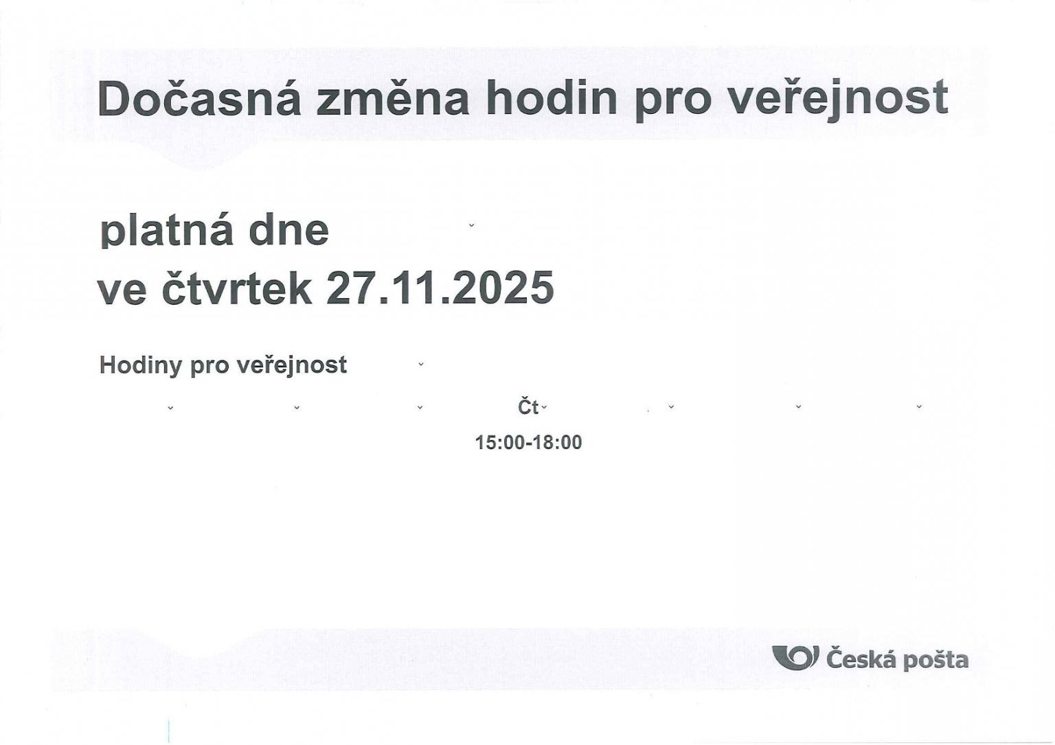 Dočasná změna hodin na poště